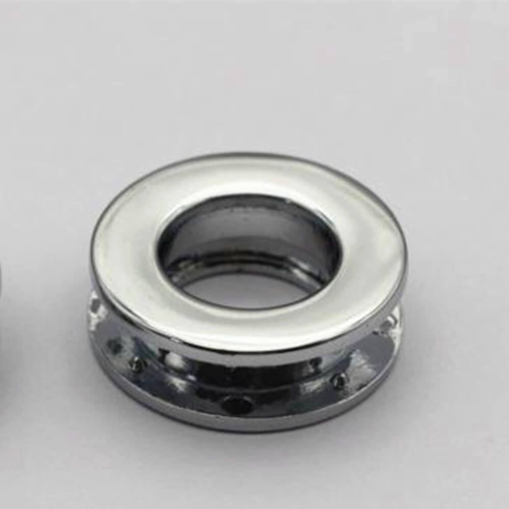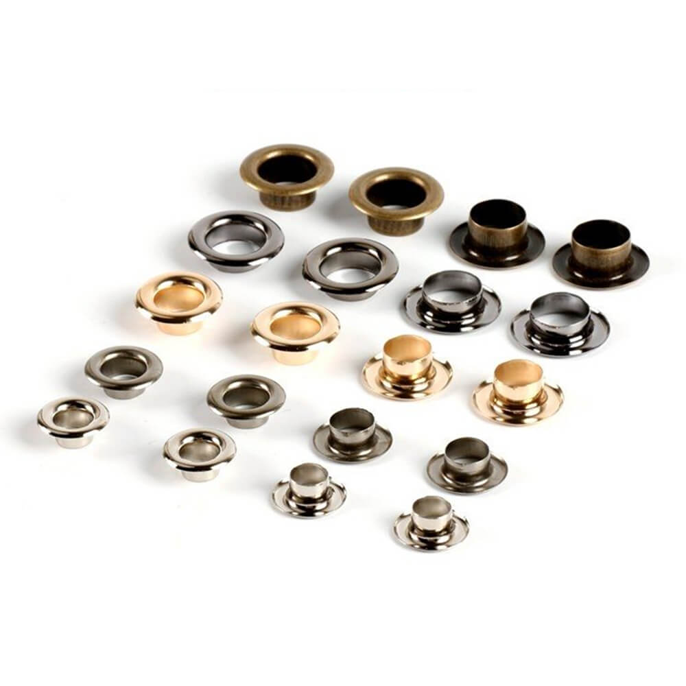 Ögalåter och grommets är små metall ringar den där är insatt in i trasa eller läder till förstärka hål. De är vanligtvis arbetssätt till spets shoeless, säkra tält, och håll upp banderoller och flaggor.